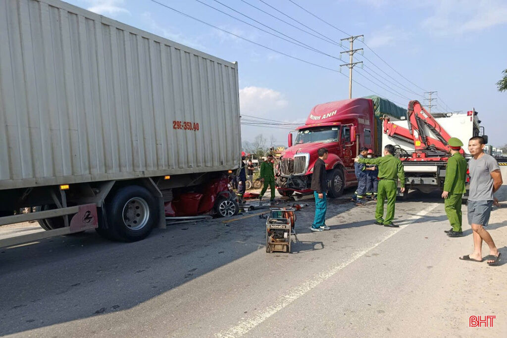 Theo thông tin ban đầu, vào thời gian trên, xe container BKS 99C – 077.53 đi trên quốc lộ 1 tuyến tránh Kỳ Anh theo hướng Bắc – Nam đã xảy ra va chạm với xe ô tô con mang BKS 38A – 580.97, xe ô tô tải mang BKS 29E – 350.40 và xe ô tô khách mang BKS 17B – 012.66, di chuyển cùng chiều phía trước.